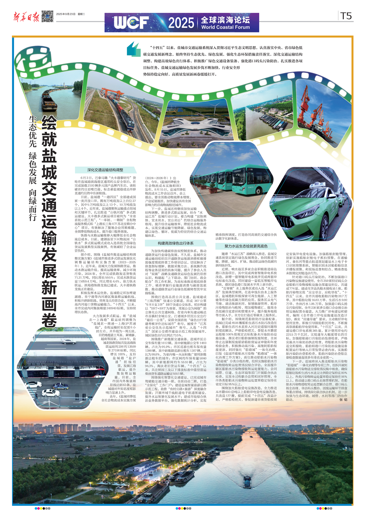 “十四五”以來,鹽城市交通運輸系統深入貫徹習近平生態文明思想,認真落實中央、省市綠色低碳交通發展新理念,始終堅持生態優先、綠色發展,強化生態環保措施責任落實,深化交通運輸結構調整、構建高效綠色出行體系、積極推廣綠色交通設備裝備、強化港口碼頭污染防治,扎實推進各項目標任務。鹽城交通運輸綠色發展步伐不斷加快,行業安全形勢保持穩定向好,高質量發展新畫卷緩緩打開。
