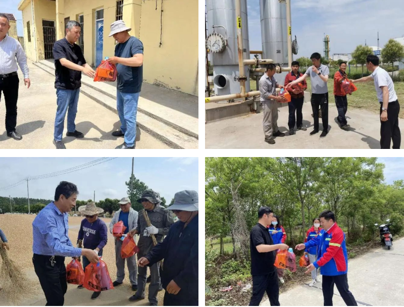 農(nóng)業(yè)科技集團積極貫徹落實鹽城港集團黨委的部署要求,以“黨建領(lǐng)航”為指引,把握正確方向,大力弘揚社會主義核心價值觀,堅持以“職工為本”,加強高溫季節(jié)一線人員生活保障工作。日前,農(nóng)業(yè)科技集團開展“夏送清涼·黨旗紅”慰問活動,公司領(lǐng)導班子分別率隊看望慰問奮斗在高溫一線的職工,為他們送去夏季勞保用品,并向他們致以誠摯的關(guān)心與問候,為廣大一線干職工帶來了絲絲“清涼”。