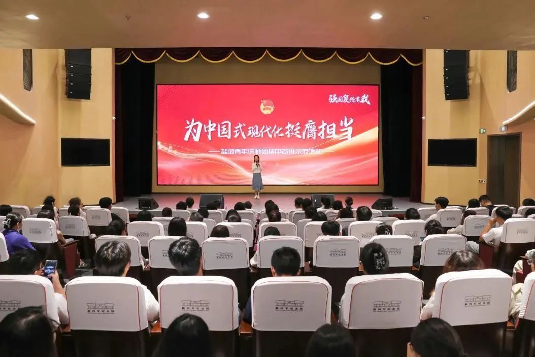 在線(xiàn)路第三站鐵軍劇場(chǎng),5位來(lái)自不同領(lǐng)域的青年講師為青年學(xué)員帶來(lái)了一場(chǎng)內(nèi)容豐富、形式多樣的精神盛宴。江蘇省金牌講解員陳風(fēng)亮老師深情講述了“一塊石頭的故事”,以小見(jiàn)大,折射出新四軍帶領(lǐng)鹽阜人民修筑海堤、抵御海潮的感人事跡;建湖縣淮劇團(tuán)青年演員夏詩(shī)雅老師分享了她的藝術(shù)成長(zhǎng)歷程以及淮劇創(chuàng)新表演方式,引導(dǎo)青年在藝術(shù)熏陶中感悟紅色基因的深厚底蘊(yùn);青年志愿者馬量則結(jié)合自身志愿服務(wù)經(jīng)歷,呼吁大家立足本職崗位,弘揚(yáng)奉獻(xiàn)精神,積極服務(wù)社會(huì)。來(lái)自水務(wù)公司和鹽城機(jī)場(chǎng)的青年講師也結(jié)合自身崗位分別做了分享。
