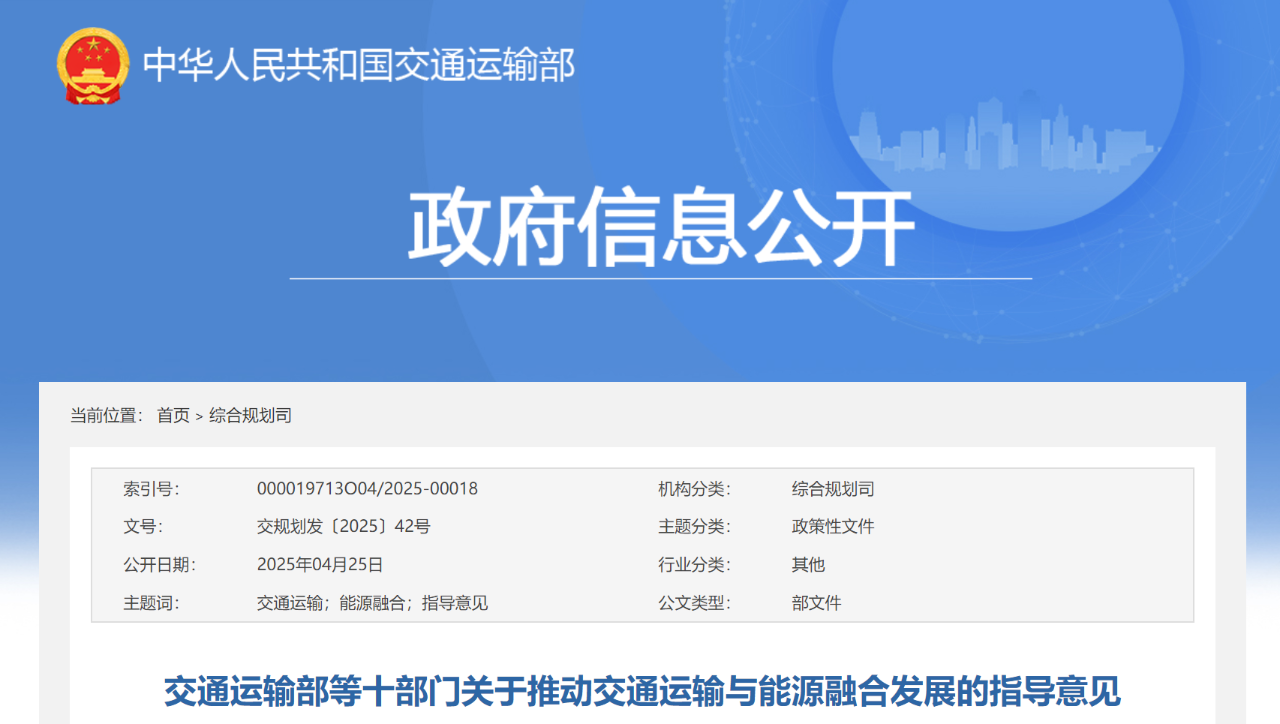 交通運(yùn)輸部等十部門關(guān)于推動交通運(yùn)輸與能源融合發(fā)展的指導(dǎo)意見
