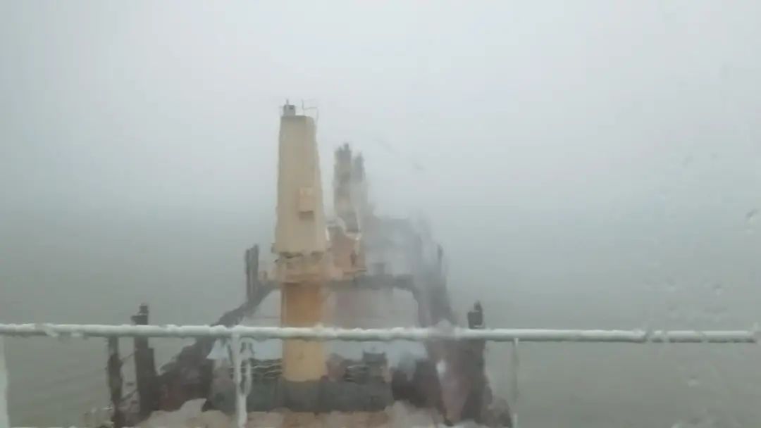 船舶行至燕尾港彎道時(shí),天氣驟然劇變:烏云壓頂,風(fēng)力猛增至九級(jí),暴雨如注,能見度驟降至200米,航道狹窄、險(xiǎn)象環(huán)生。引航員立即指令船方加強(qiáng)值守、雙錨備妥落實(shí)各項(xiàng)應(yīng)急措施。